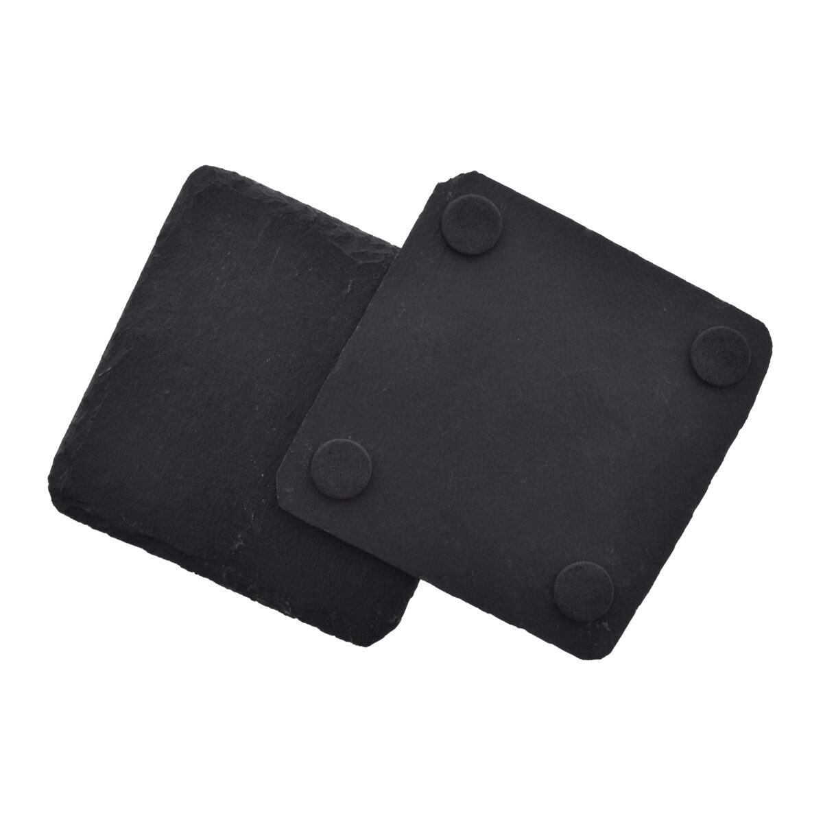 These elegant rough-edge slate coasters are suitable for any décor. Made of natural slate, the coaster feature velvet feet to protect table surfaces. Set includes 4 coasters.