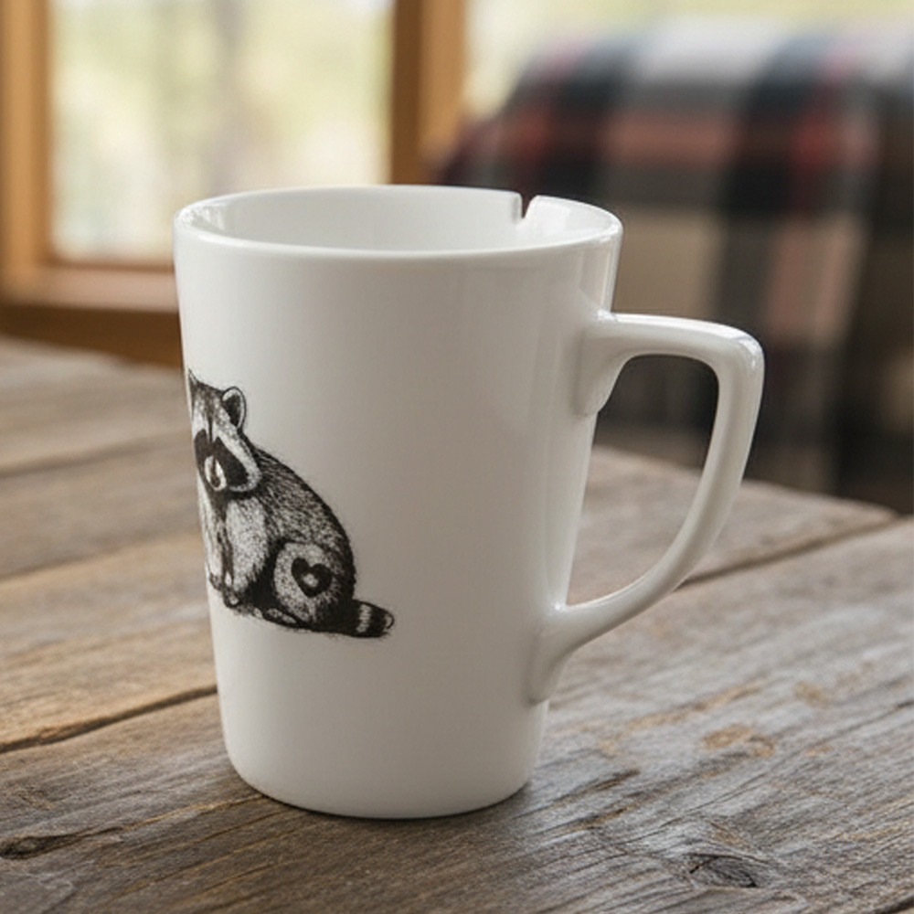 Tags: 400 ml, canadian design, Cuisivin, Decorated, Mug, Mug with Handle, Porcelain, Porcelain Mug, raccoon
