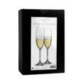 Raise a toast to the Bride and Groom with these specially designed glasses! Lead-free crystal glasses, made in Europe with frost coloured print. Ideal for wedding registries, anniversary and wedding gifts. Gift set includes 2 Champagne Flutes in gift box. Print “Bride & Groom” Capacity: 7.5oz / 220ml. Dishwasher safe.