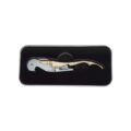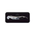 The Prestige Double Lever Corkscrew is a heavily constructed double lever corkscrew. The screw is grooved and double teflon coated for extra ease when inserting and pulling corks – especially synthetics. The heavy solid handle is rounded for a comfort fit, and very robust. Beautifully packaged in a metal box – perfect for gift giving!