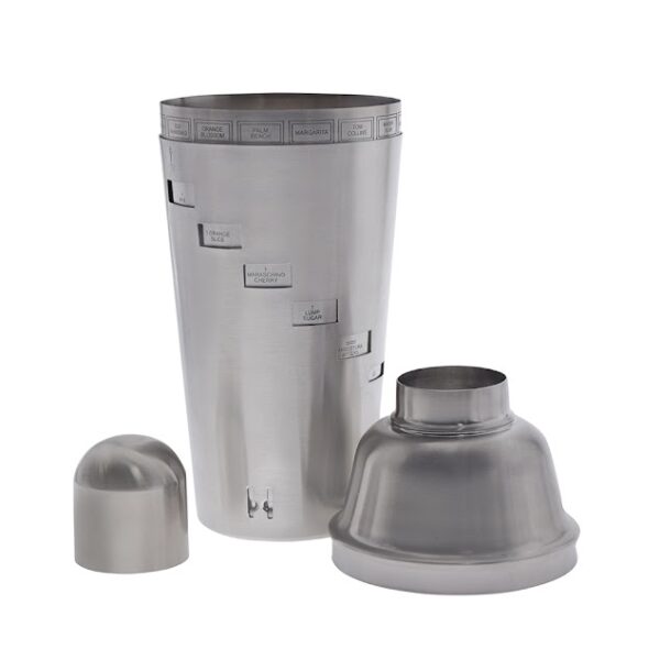 - Three-piece Shaker is printed with 5 popular cocktail recipes – in English and French
