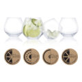 Enjoy your Gin & Tonic and Gin cocktails in these Spanish inspired stemless Copa Gin glasses. Specially designed wide-bodied balloon-shaped bowl to hold plenty of ice and garnish for ever-growing styles of Gin drinks. Lead-free crystal, made in Europe. Gift set includes 4 glasses and 4 recipe coasters.