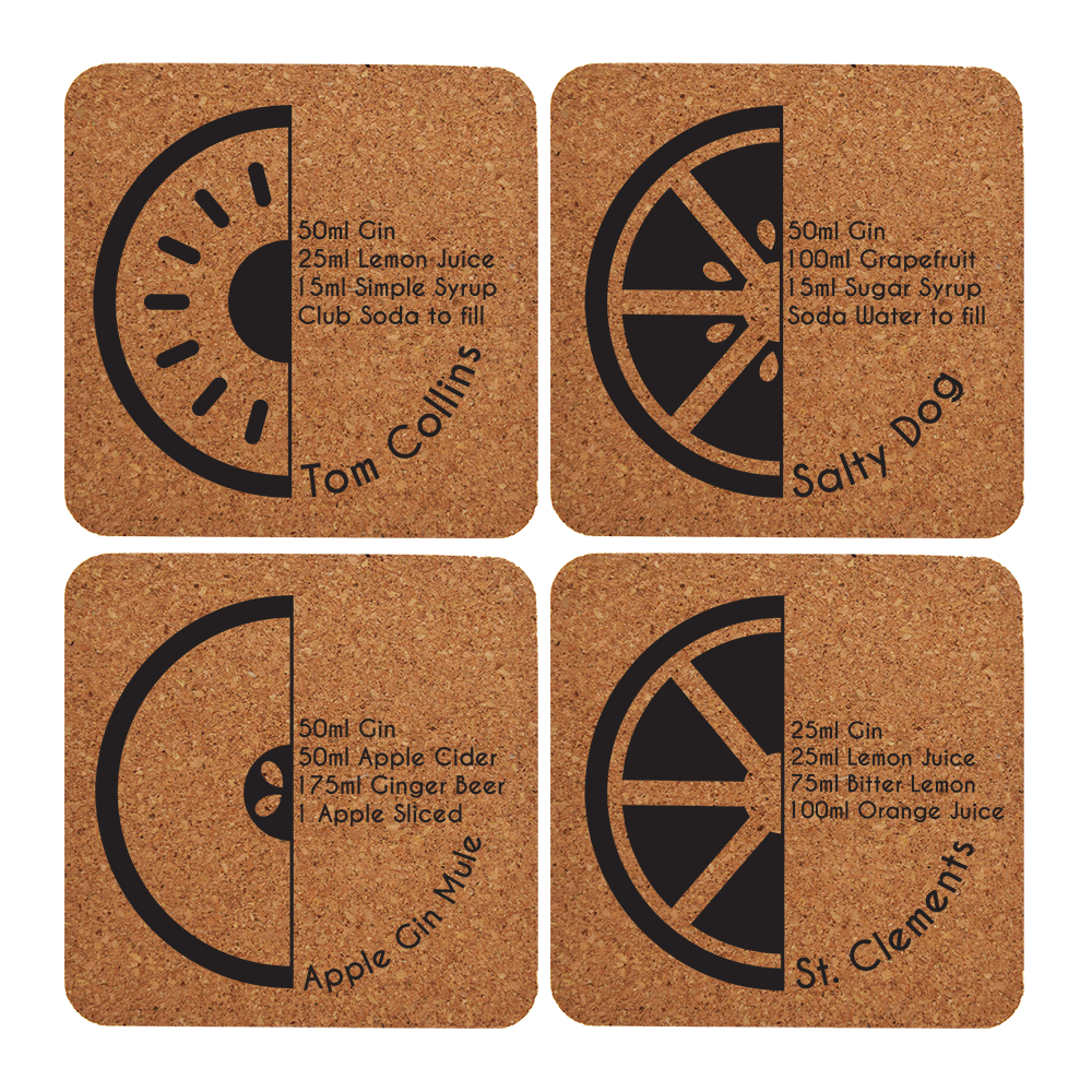- Includes thick Portuguese cork coasters – each with a different Gin cocktail recipe