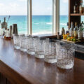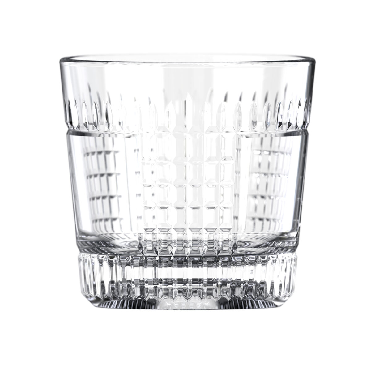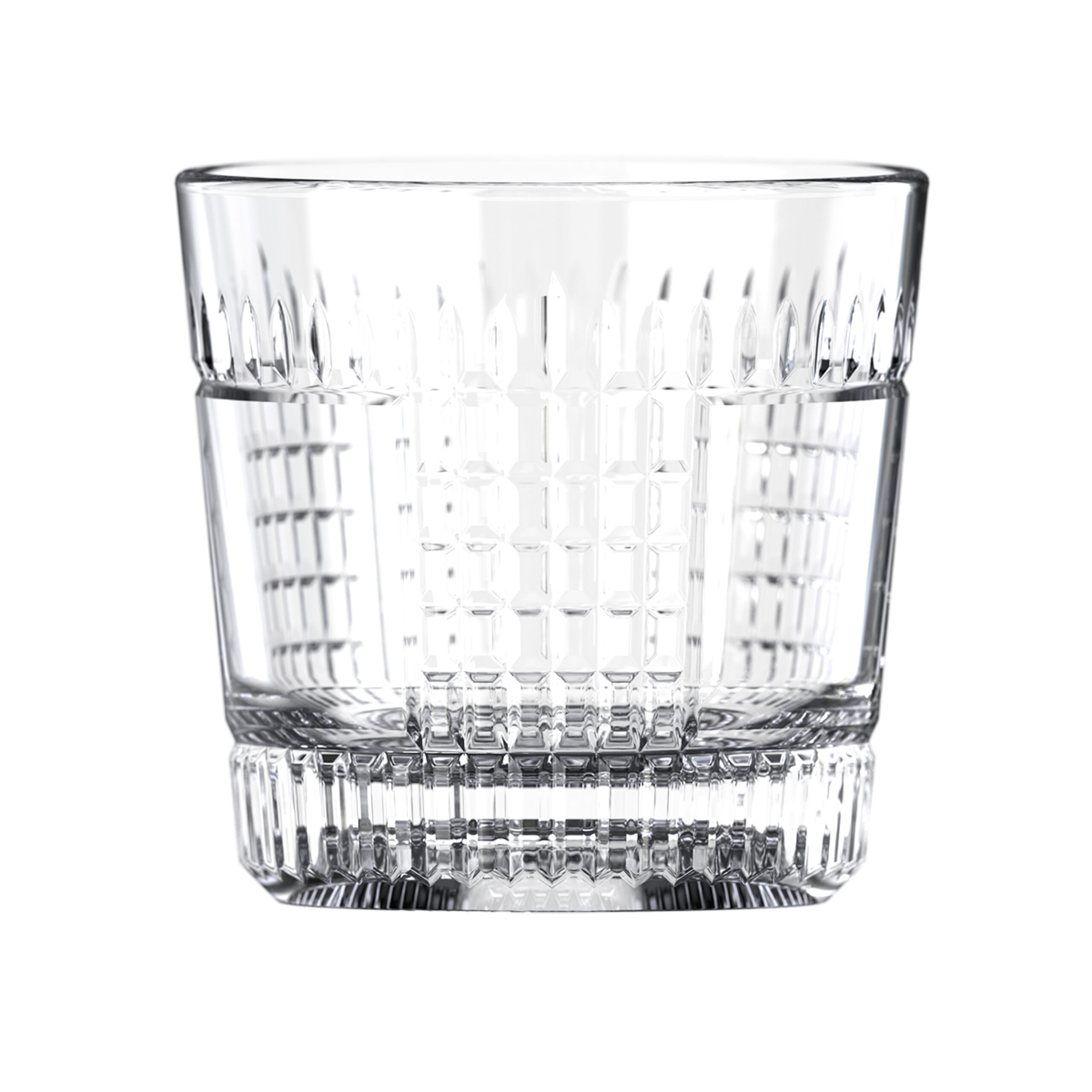 Savor whisky and cocktails in a modern refined style. Intricately cut geometric patterns elevate the drinking experience. Geometric facets create a bright, brilliant appearance. Glasses specially tapered with a concave base to offer balance and comfort.
