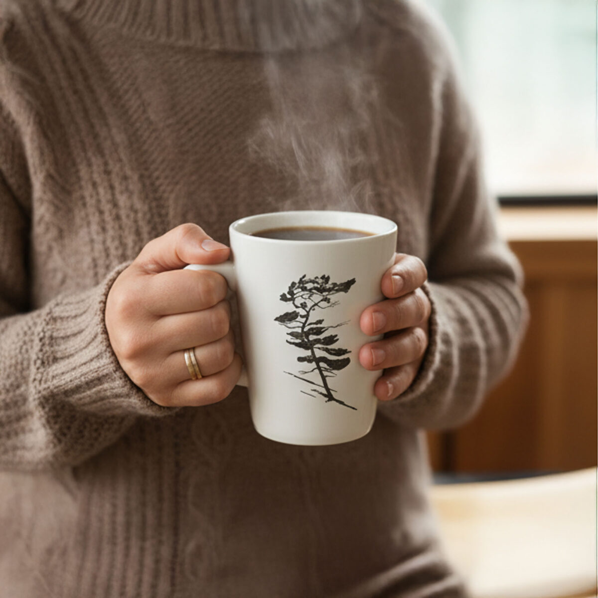Inspired by resilient coastal trees, the Windswept East print brings calm, minimalist beauty to your daily ritual. This high-quality porcelain mug is cadmium-free, double-fired, and chip-resistant—made to last through countless refills. With a generous 13.8 oz / 400 ml capacity and printing done in Canada, its an understated design that brings calm, coastal character to every sip.