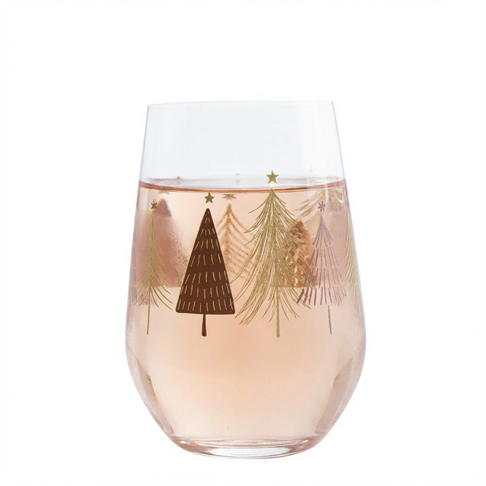 Transport yourself to a serene winter wonderland with the Winter Forest Stemless Glass. This eye-catching glass features a vibrant, wrap-around forest print that will brighten up any table. Perfect for enjoying cocktails, whisky, juice, water and other beverages.