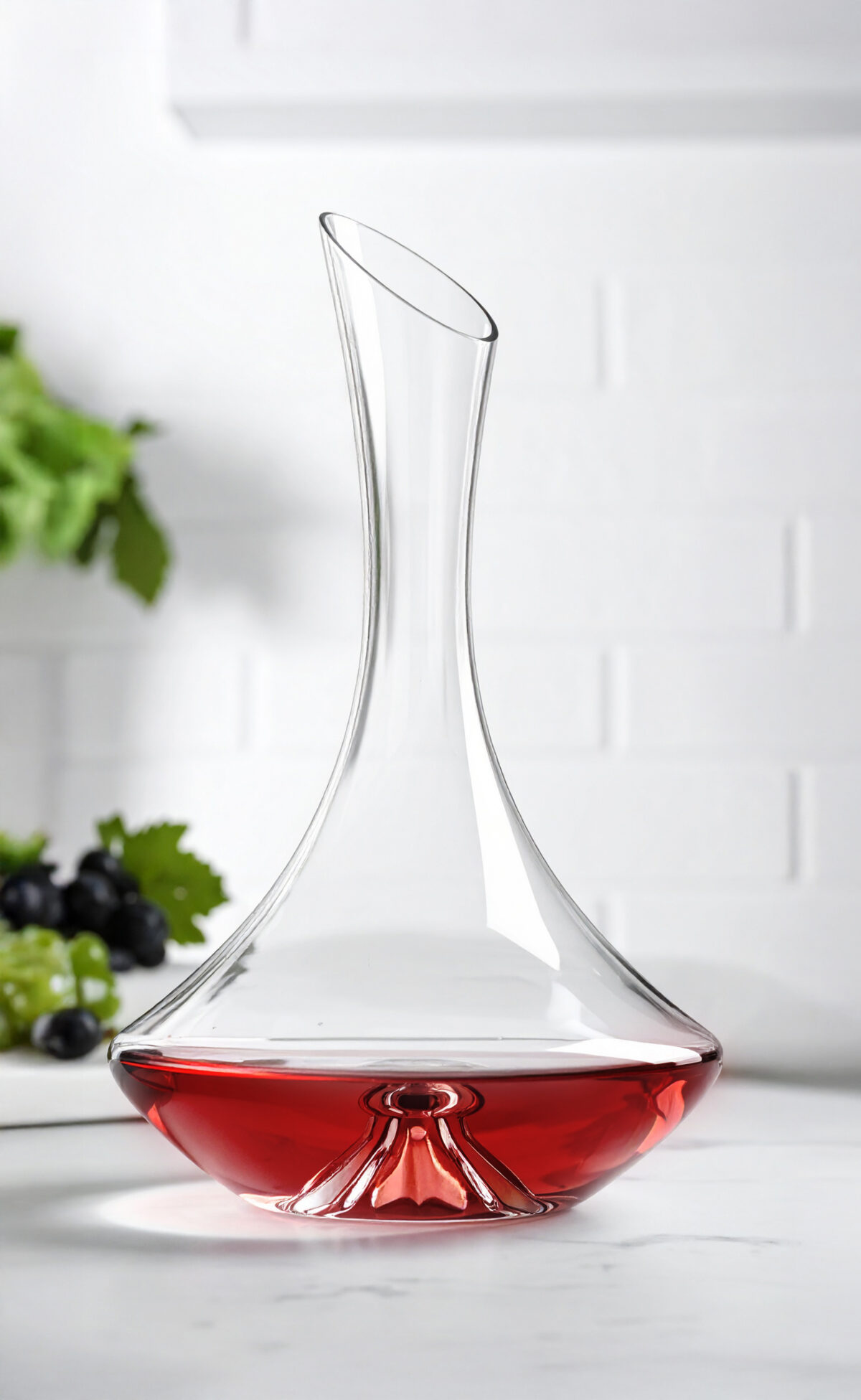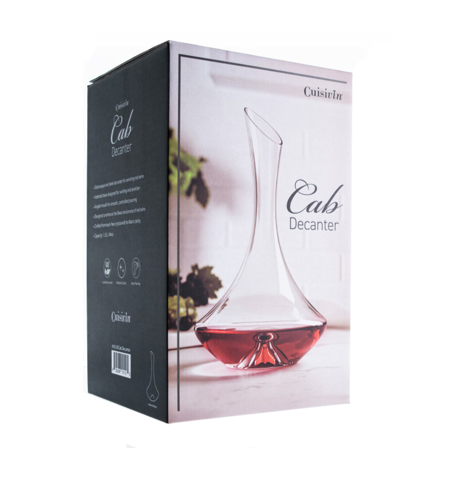 The Cuisivin Cab Decanter features a very sleek contemporary design which makes a fantastic presentation. The raised indent on the bottom helps to swirl the wine as it enters the decanter, while the mouth is aesthetically angled for pouring. European made with lead-free crystal and the large 44 oz size is perfect for decanting full bottles of your favorite red wine.