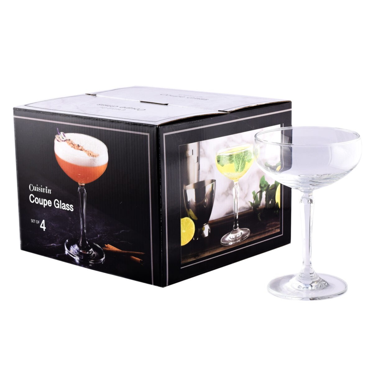 Serve your champagne, sparking wine and cocktails in these classic coupe glasses. Boasting a stylish stem, the glasses are perfect for serving cocktails in style. Capacity: 215ml/7.25oz Height: 7.6” / 192mm. Handwash recommended. Perfect for gift giving.