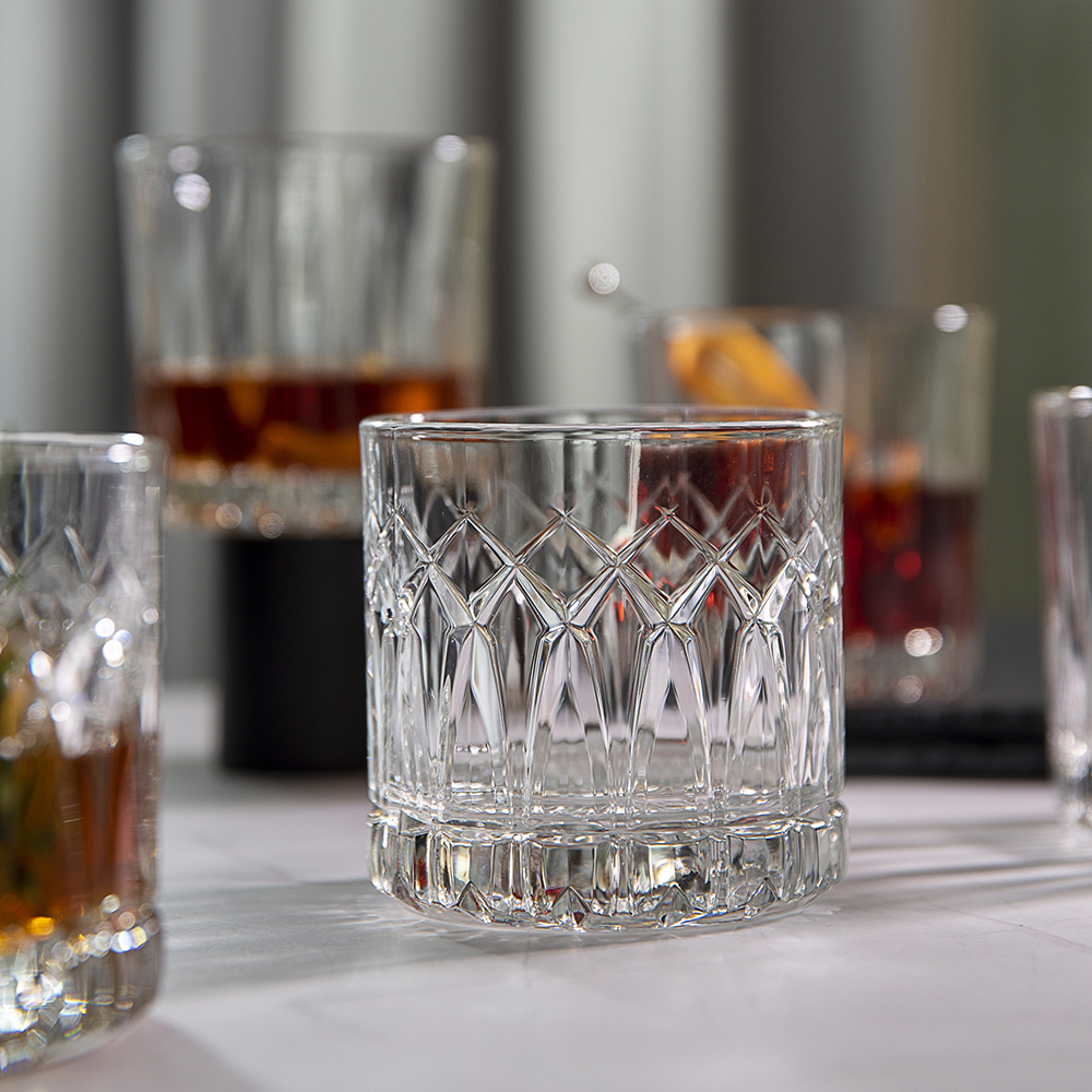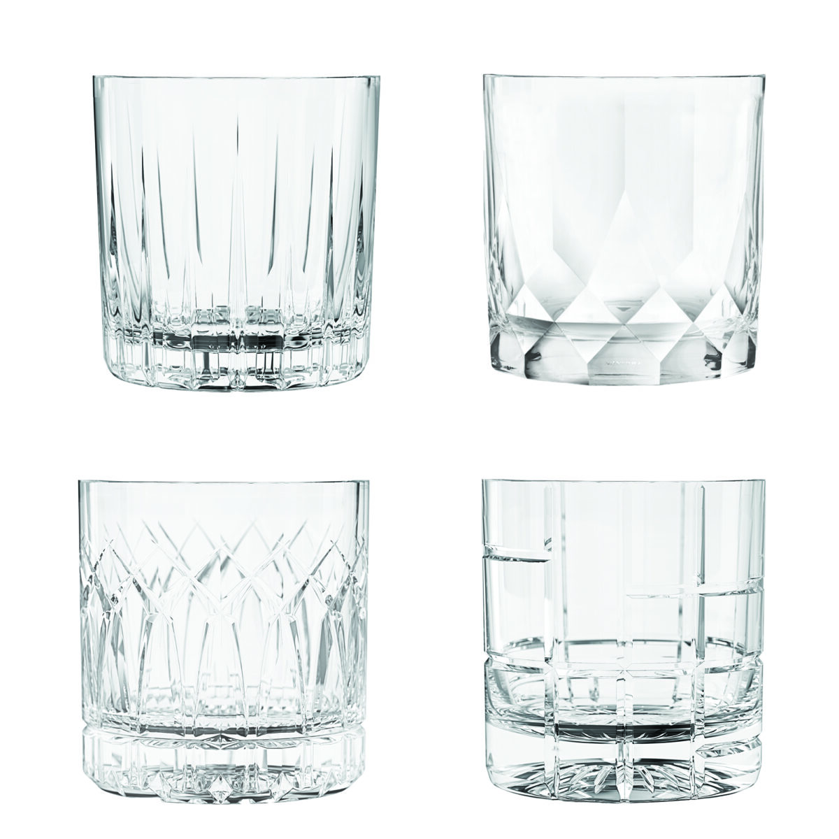 Le Glendale Whiskey Set est idéal pour mélanger et partager un verre avec des amis. Le double design classique à l’ancienne est un style intemporel, mais chacun des quatre verres du set présente son propre motif de verre taillé. Savourez vos boissons mélangées sans les mélanger !