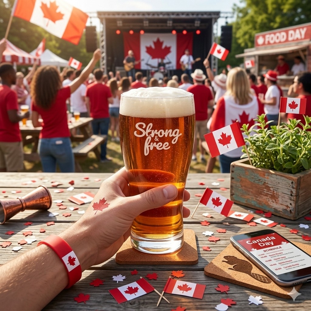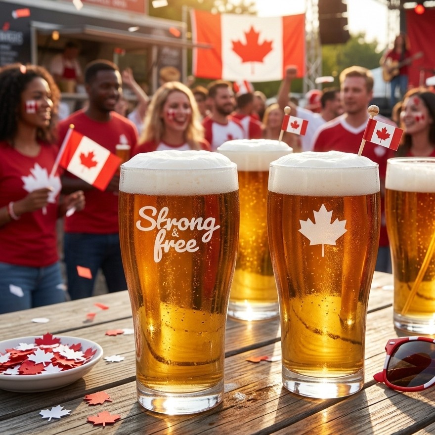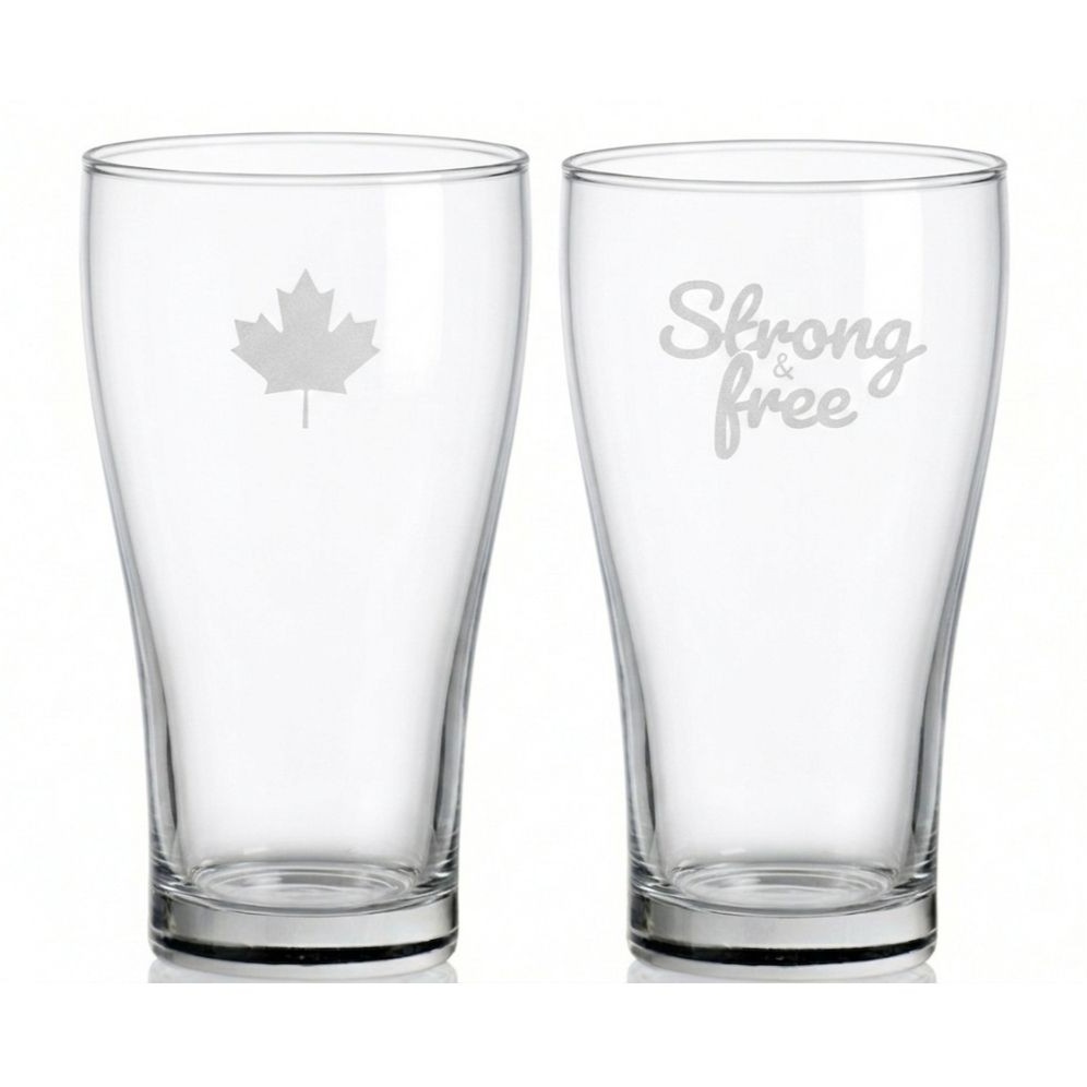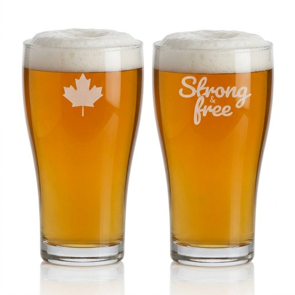 Oh Canada! Sit back, relax and enjoy your favourite drink in these beautiful canadian strong & free glasses. Beautiful subtle frost coloured print. Classic design, suitable for a wide range of beer styles. Ideal 15oz capacity. Dishwasher Safe.