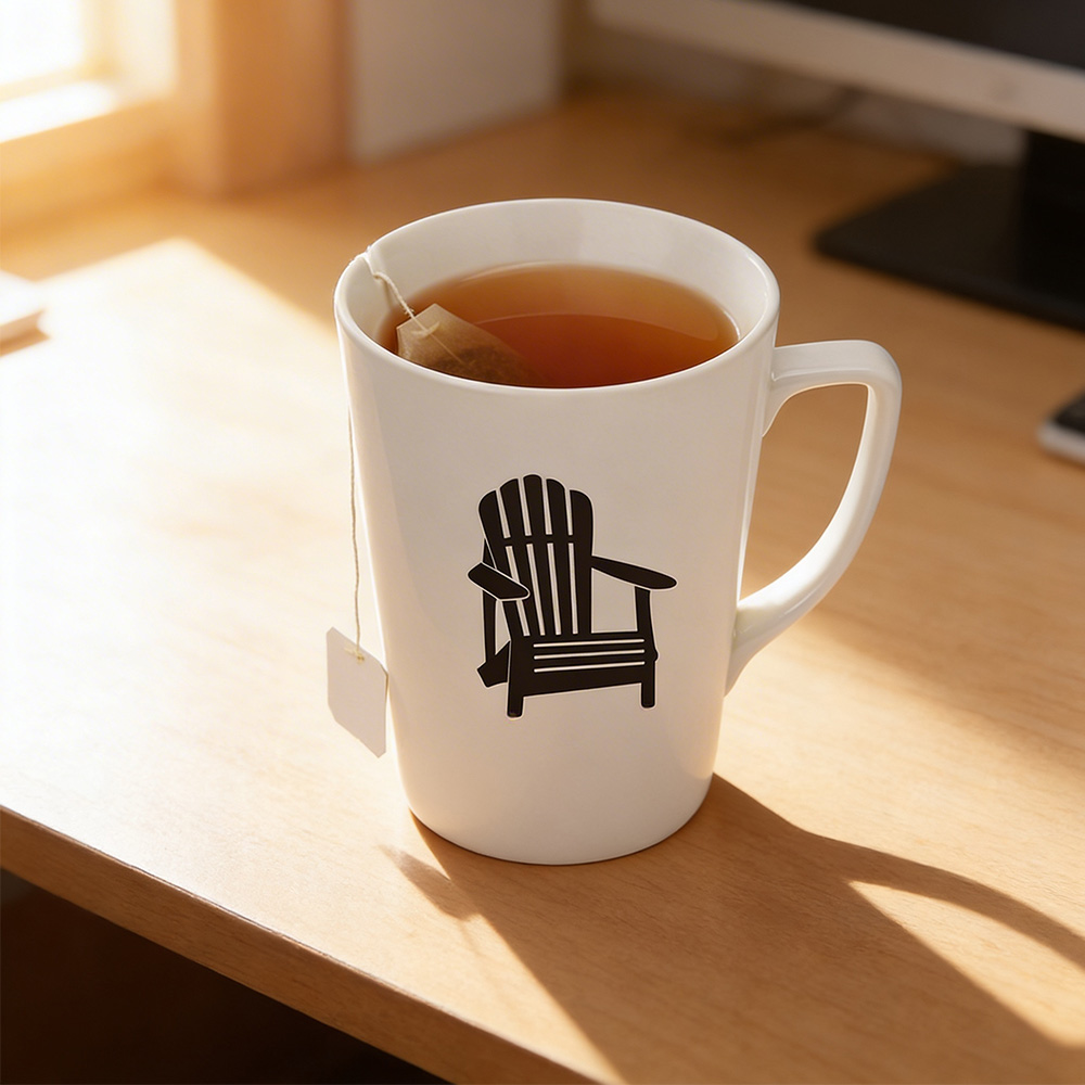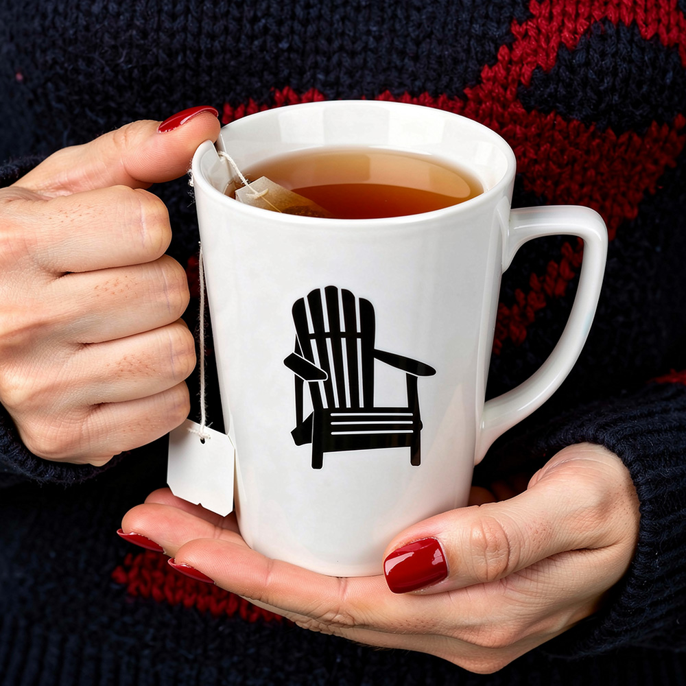 Bring a little cottage comfort to your daily tea routine – featuring the classic Muskoka Chair print in a simple, timeless style. The high-quality porcelain mug is cadmium-free, double-fired, and chip-resistant, and includes a clever built-in slot on the rim to hold your tea bag, keeping things neat and cozy. With an 11.8 oz / 350 ml capacity and printing done in Canada, it’s the perfect mug for slow sips and warm moments.